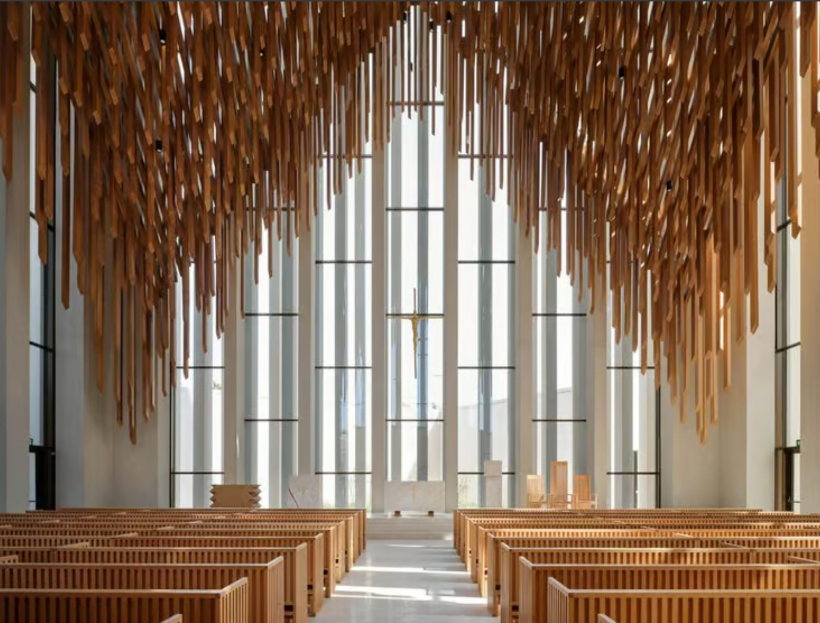 המסגד מופעל בעיצוב אסלאמי מסורתי, בית הכנסת בעיצוב מודרני, והכנסייה בסגנון קלאסי אירופי.