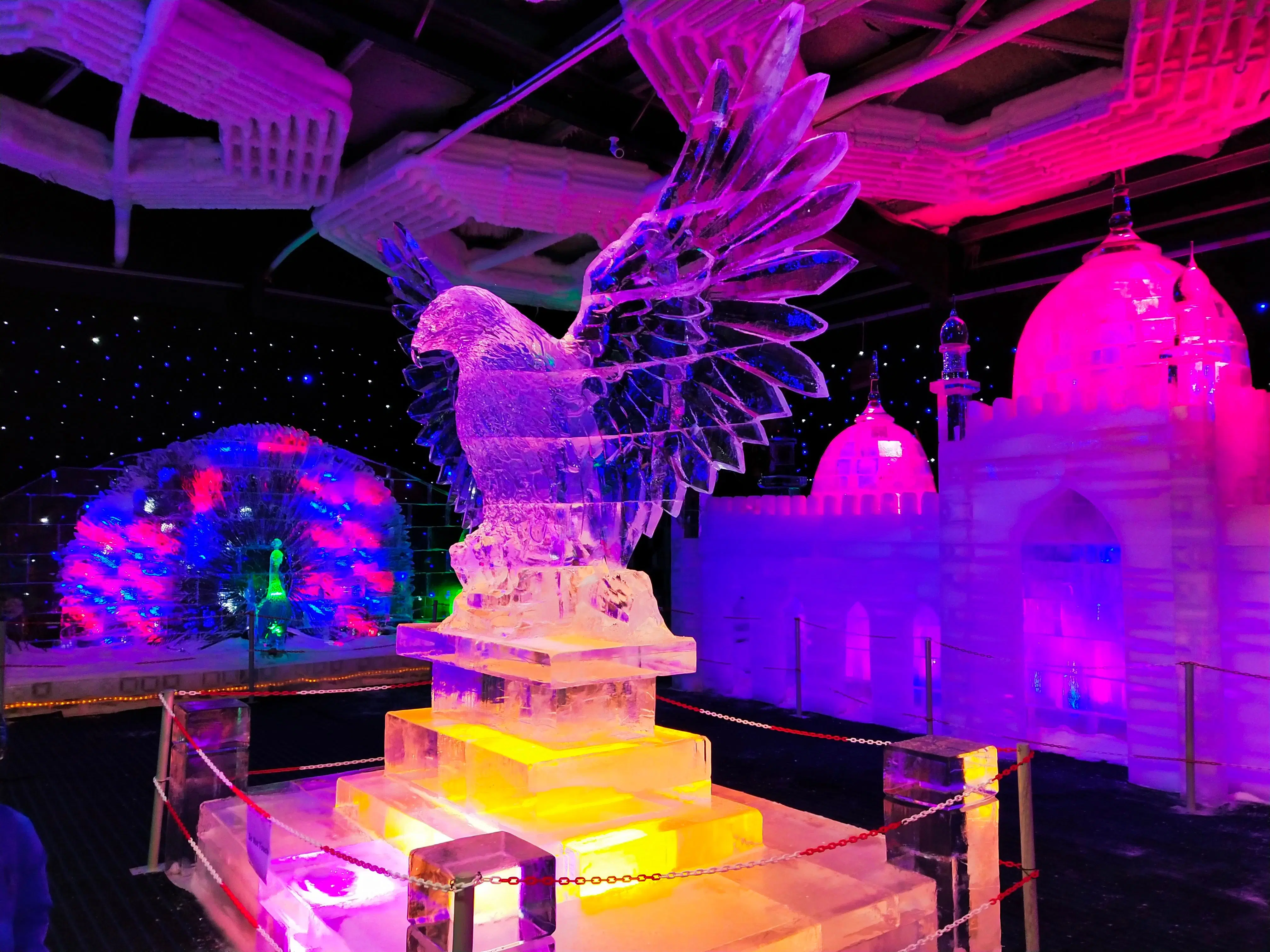 הפארק מציג תערוכת פסלים בקרח בצורות ומגוון יצירות אומנותיות, ורפליקות מוקטנות של חיות ומבנים מפורסמים. כדי להתמודד עם הקור, תקבלו מעיל בכניסה למתחם.